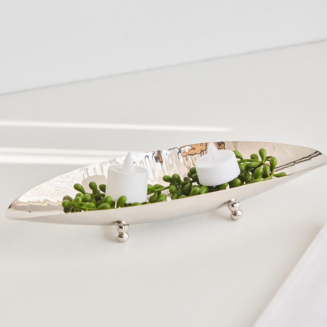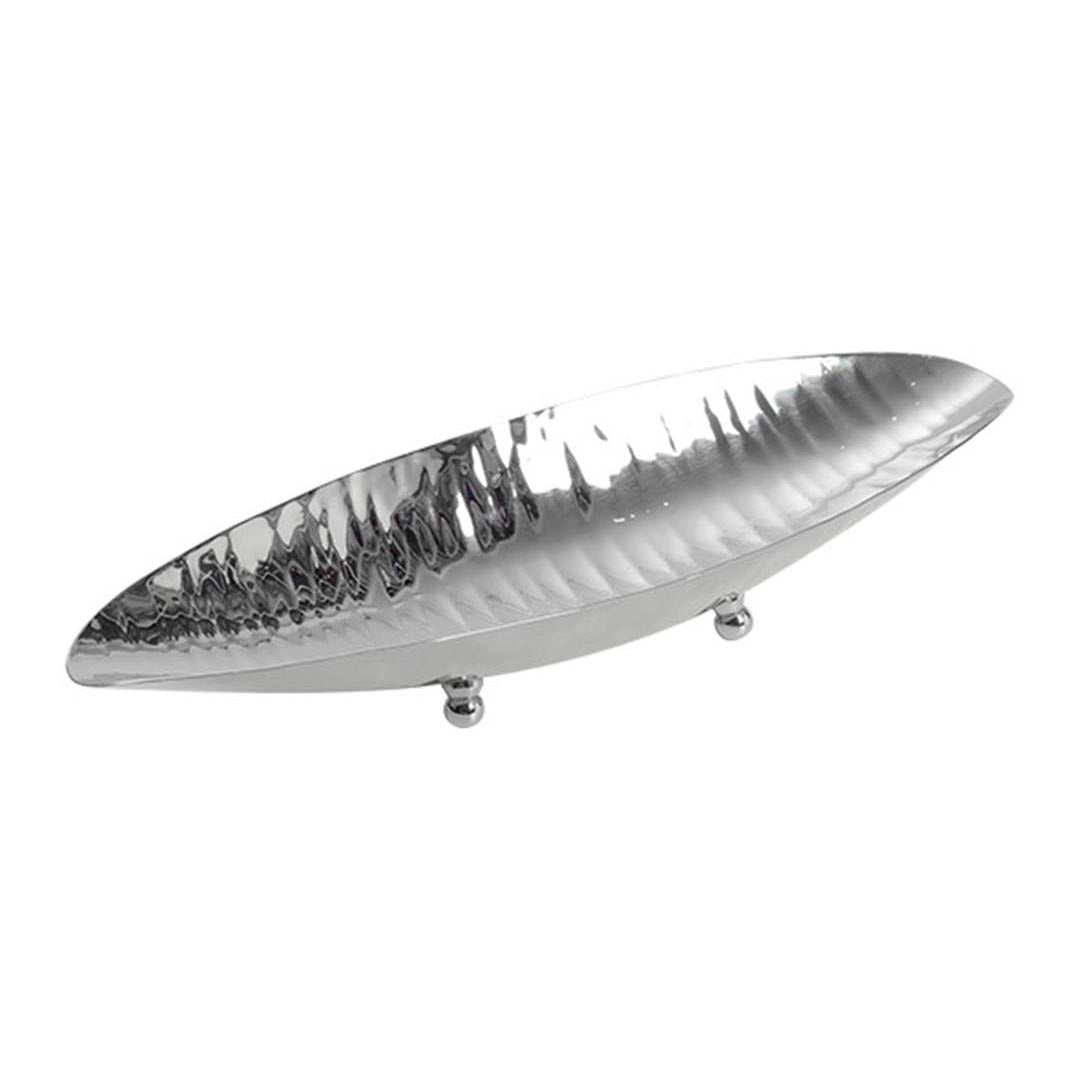A beautiful silver metal dish crafted in an elegant shape. Perfect for serving, displaying, or adding a decorative touch to any room. The beautiful design and quality metalwork make it a versatile piece for your home. Ideal for gifting or personal use.