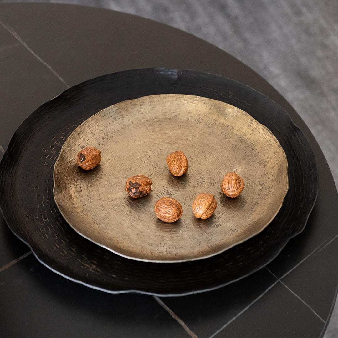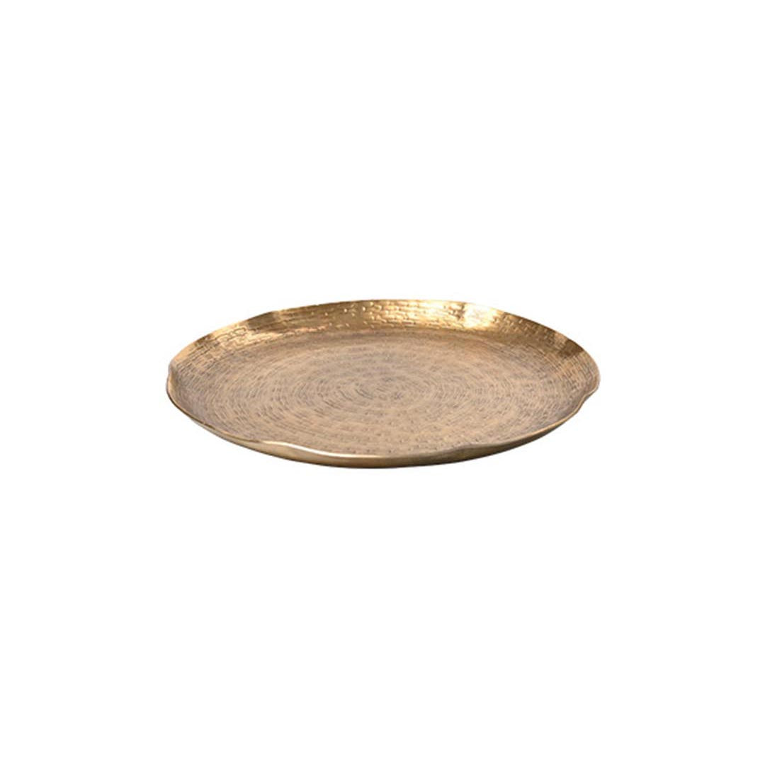 A beautiful golden round tray that brings elegance to any space. Perfect for serving, displaying, or organizing your essentials with style. The smooth, polished finish catches the light beautifully, making it an eye-catching addition to your home decor. An ideal choice for everyday use or special occasions.